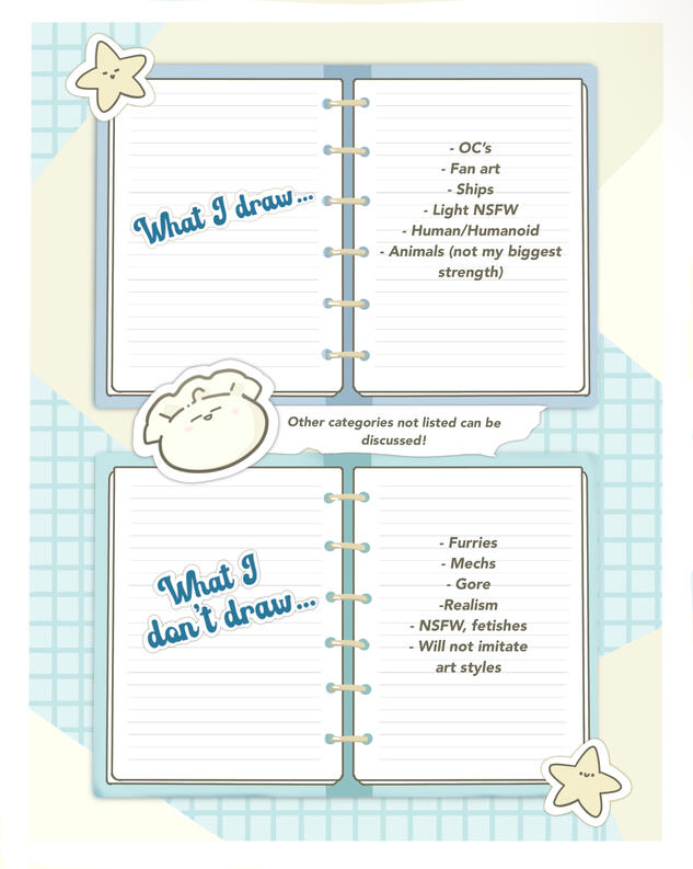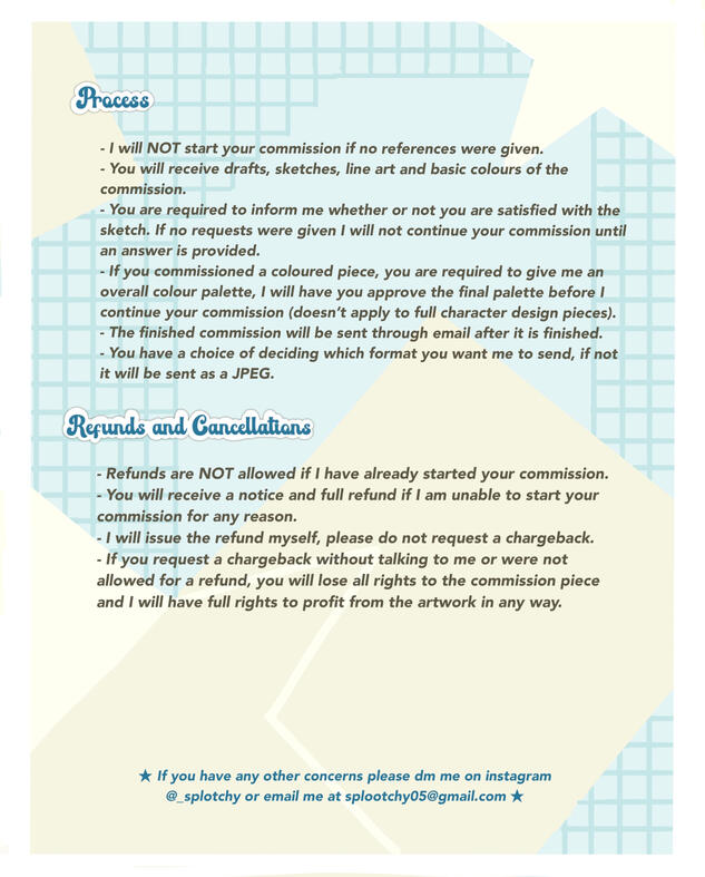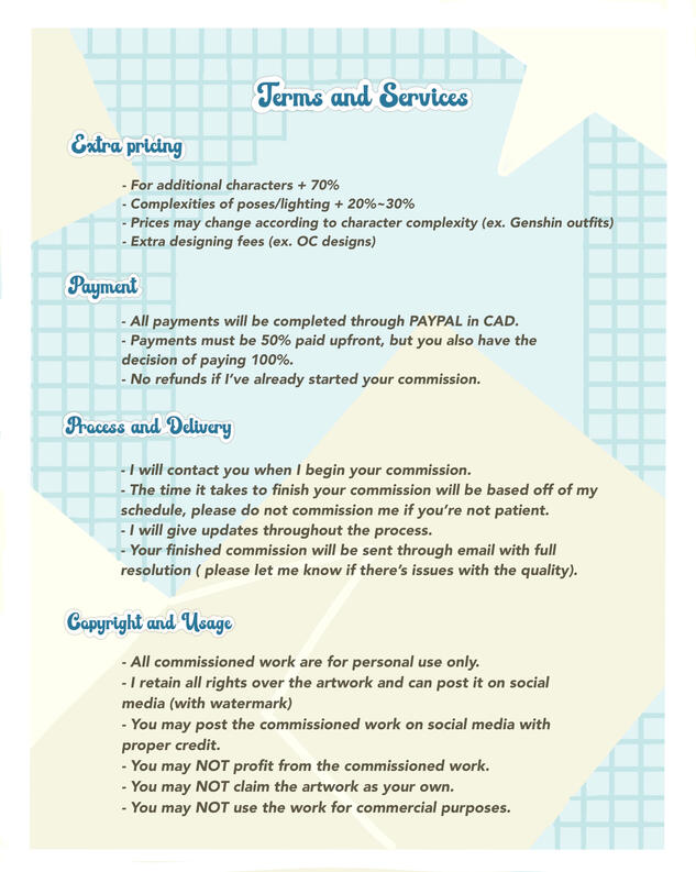 Welcome to my commission page. Please read before commissioning, and by commissioning me, it means that you acknowledge and agree to all the terms and conditions listed.